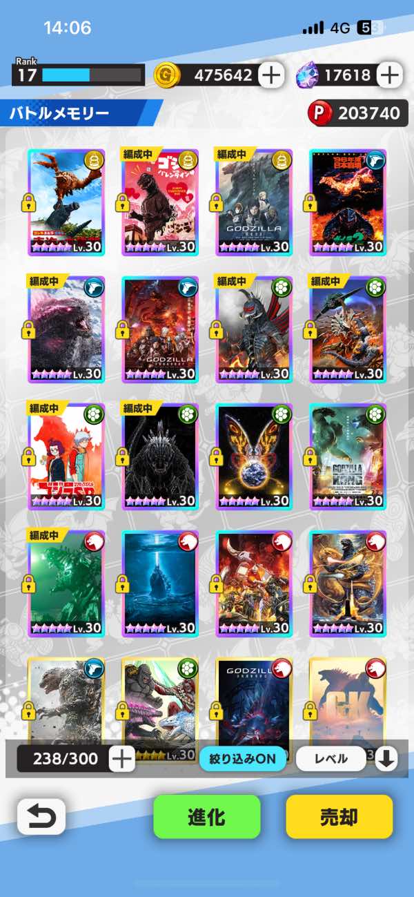ゴジラバトルライン(GODZILLA BATTLE LINE) ゴジラバトルライン Gストーン17618個 カンストバトメモ多数|マツブシマーケット