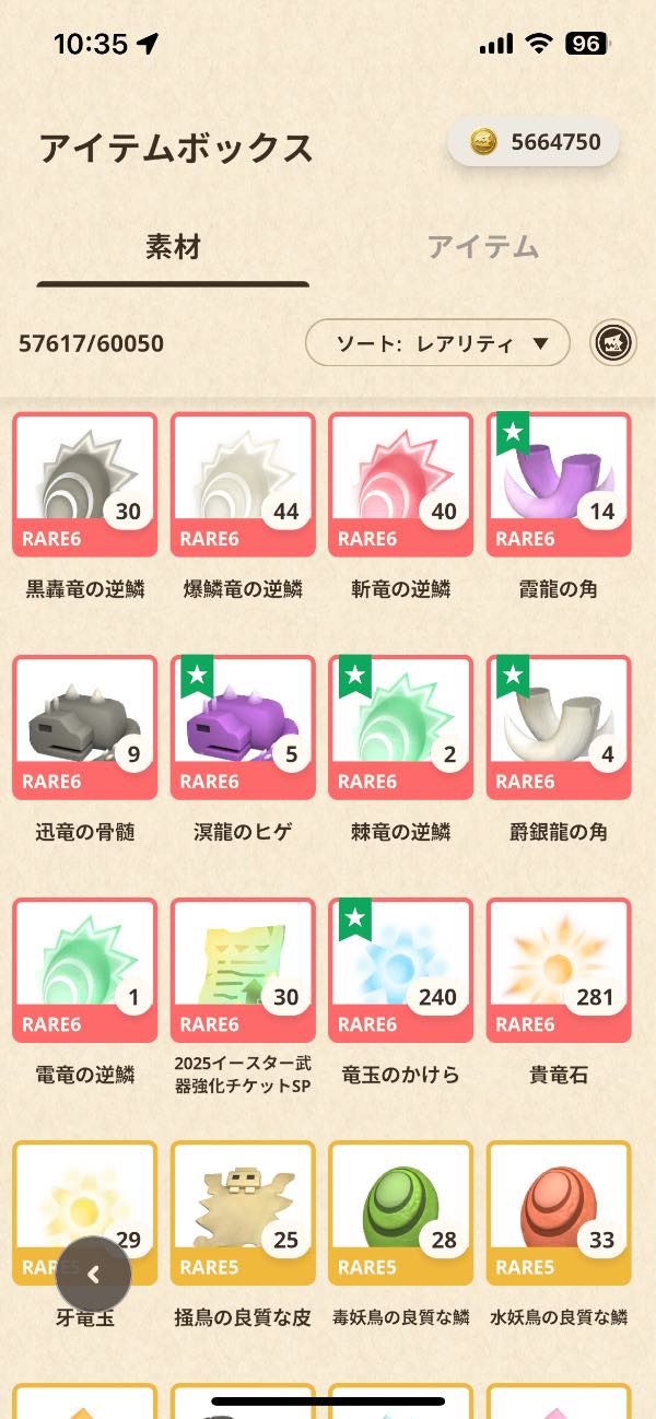 その他、課金アイテムやレア6アイテムは写真のとおりです。