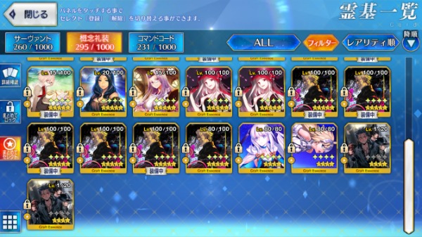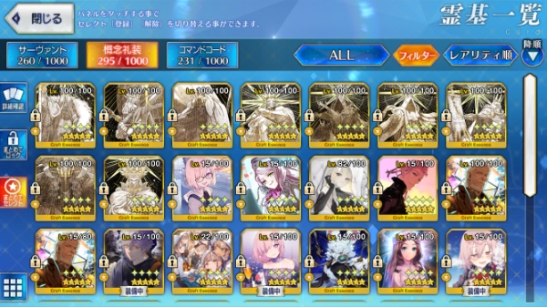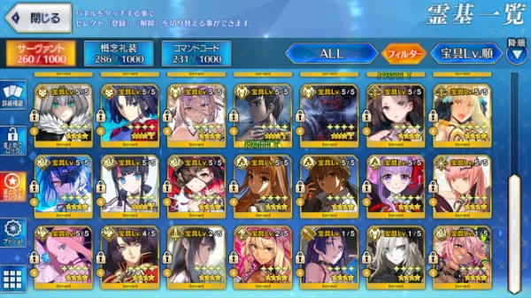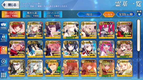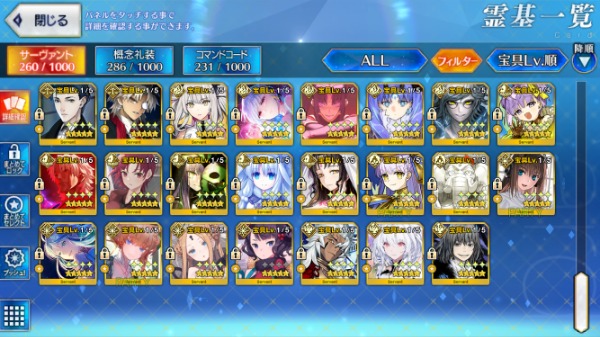 星5サーヴァントの数は累計入手数です。