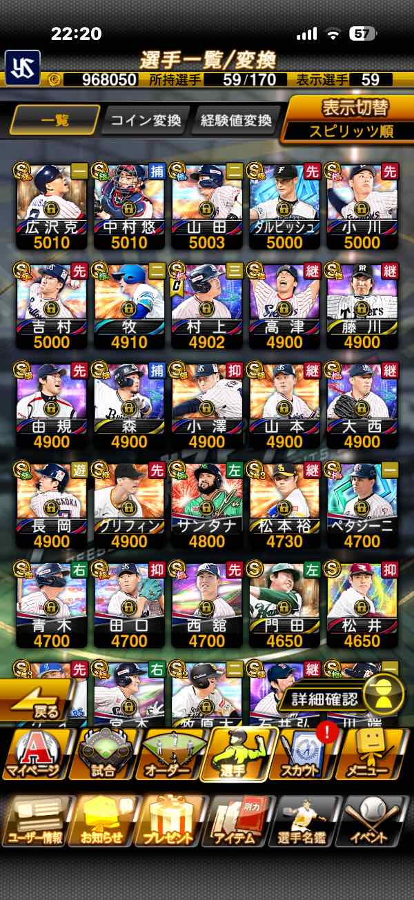 プロスピa引退 Lv134カープ純正