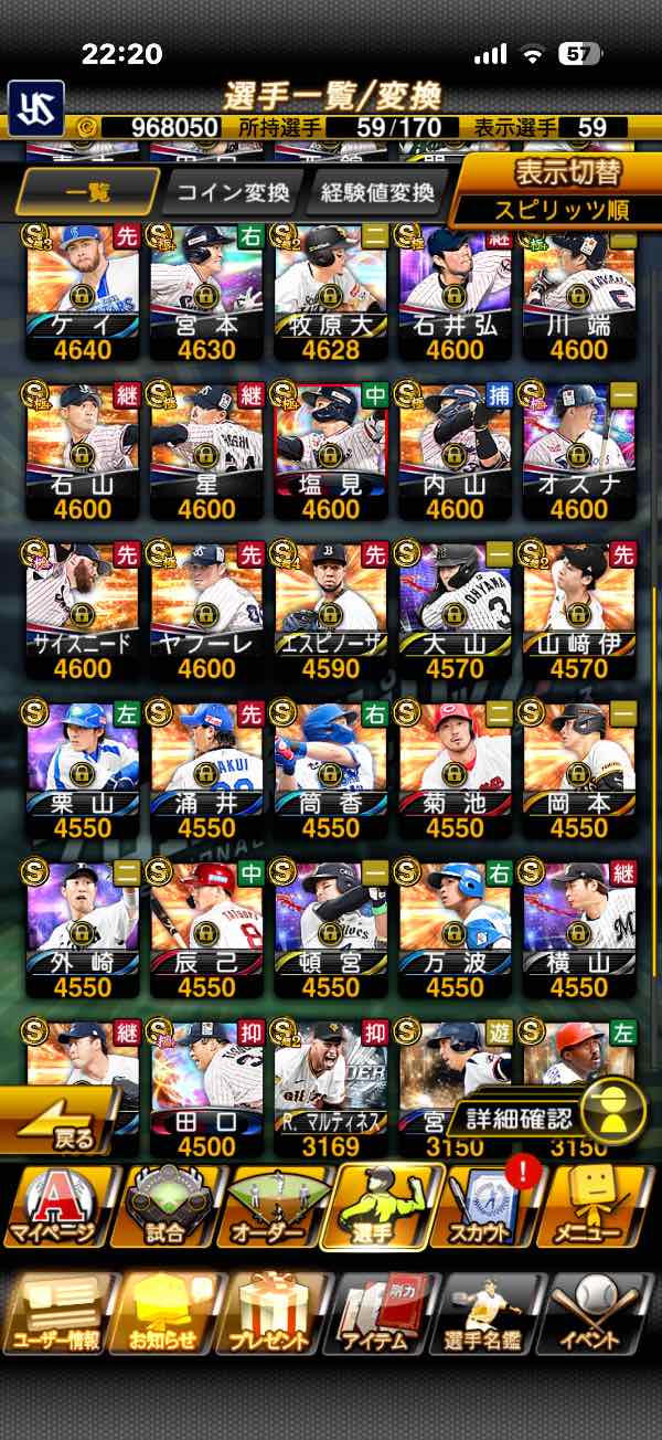 プロスピA(プロ野球スピリッツA) 「極33体 TS藤川極 ダルビッシュ極 村上牧サンタナ TS/OB多数 超5複数 S54体 ヤクルト純正可 引退|マツブシマーケット
