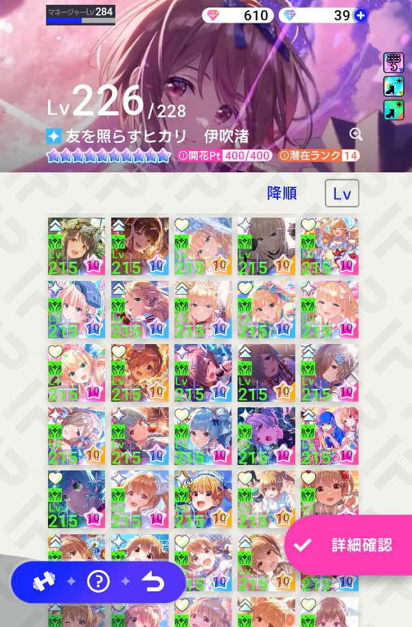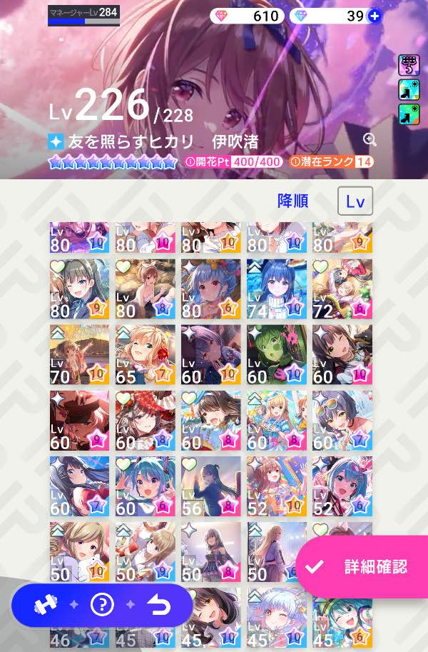 有料の衣装、髪型、バースデー称号等もキャラで所持数バラつき有ります、ゲーム自体は結構ガチでやってたのでまったりやりたい人もこれからガチで始めたい人、サブ垢用にしたい人等に良いかもです