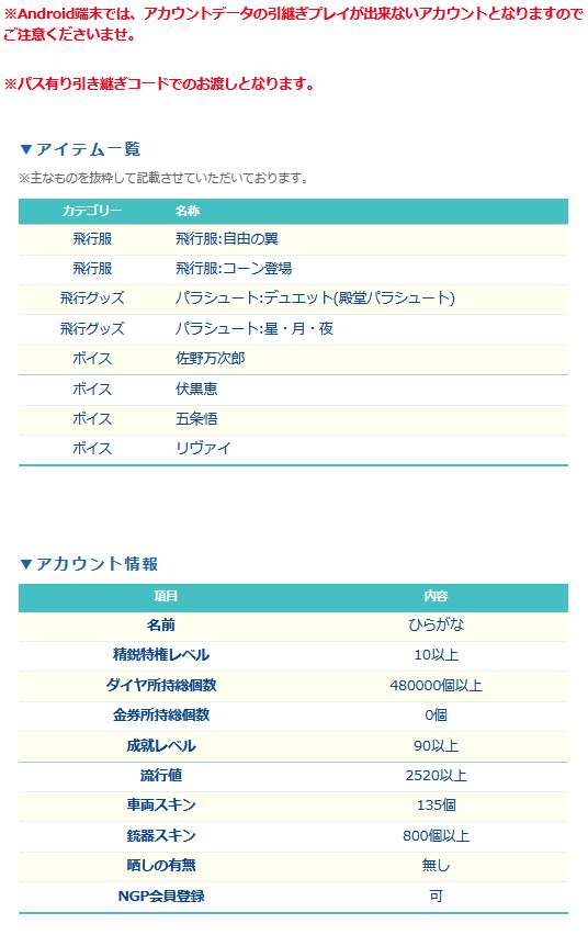 荒野行動アカウント