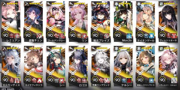 Mon3tr W イネス ウィシャデル ヴィルトゥオーサ ウルピスフォリア キリンRヤトウ シュウ チョンユエ ハルカ ミュルジス ユー リィン 焔影リード 血掟テキサス 純燼エイヤフィヤトラ 濁心スカジ 遊龍チェン 耀騎士ニアール 帰溟スペクター 荒蕪ラップランド 新約エクシア 斬業ホシグマ