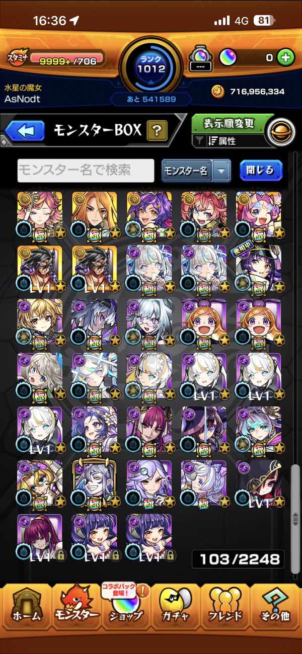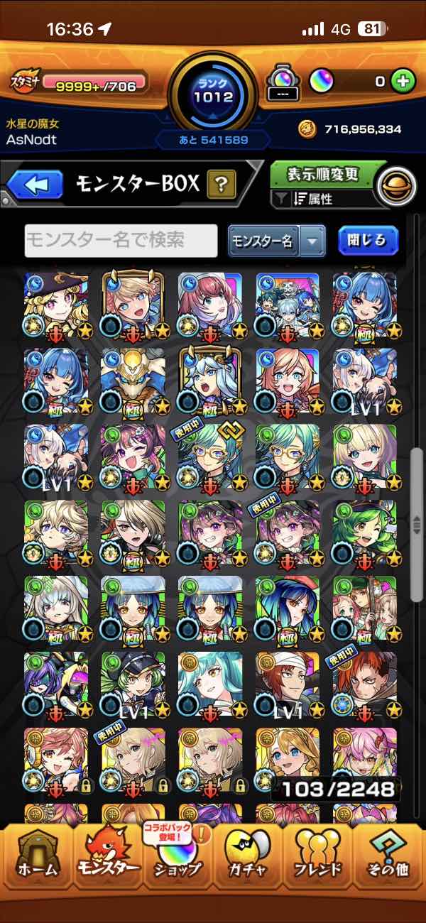ガチャ限運極8体 ランク1000↑引...