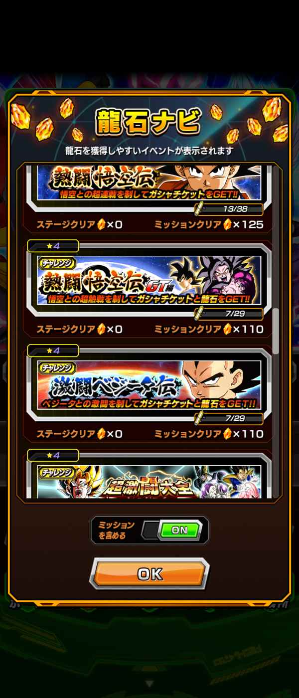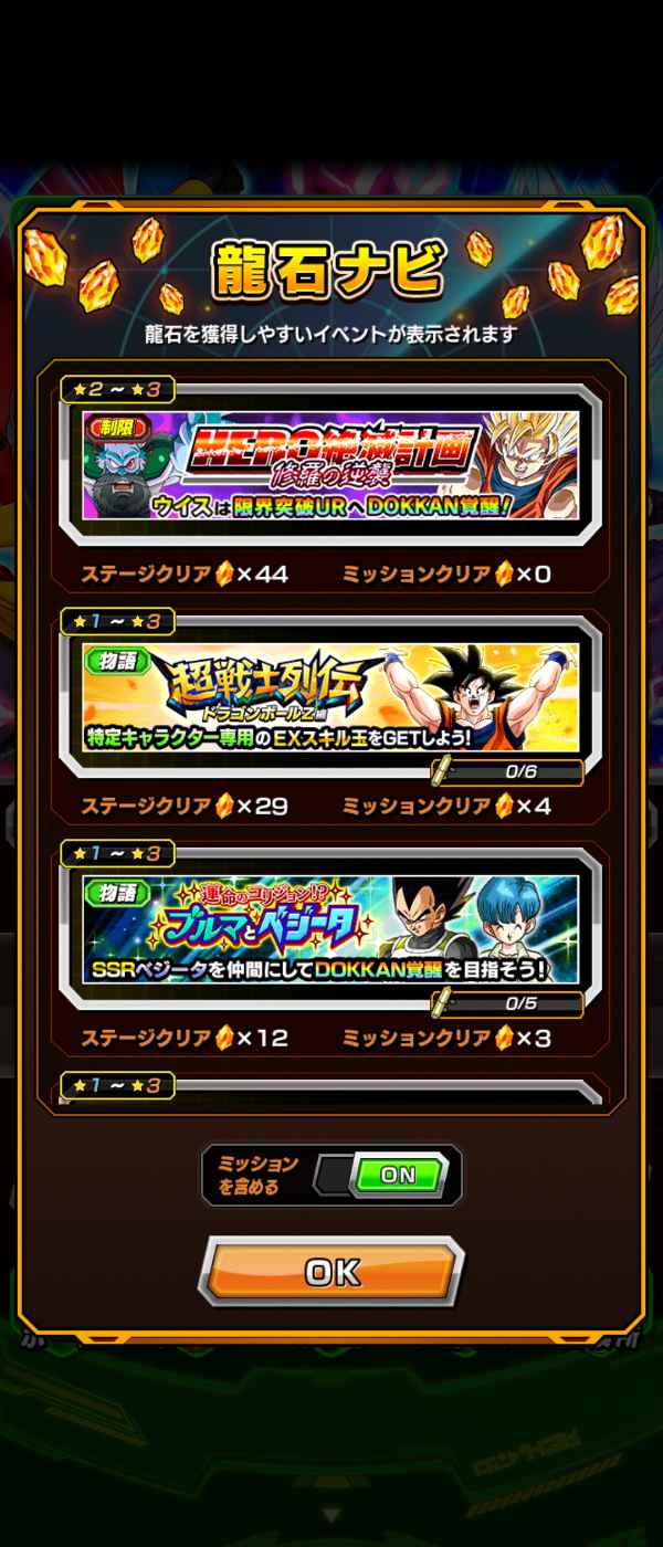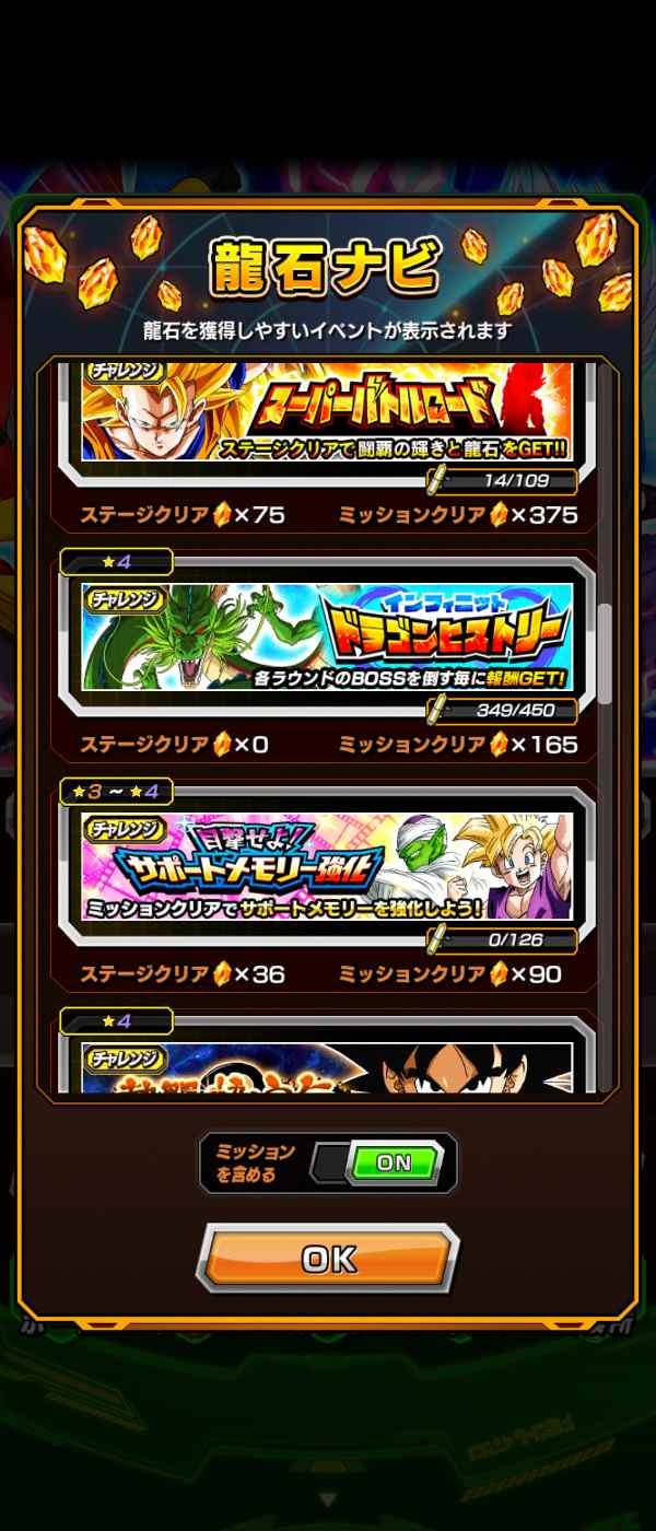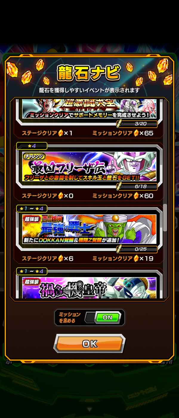 未クリアミッション、ステージ多数の為数千個以上の龍石獲得可能です。