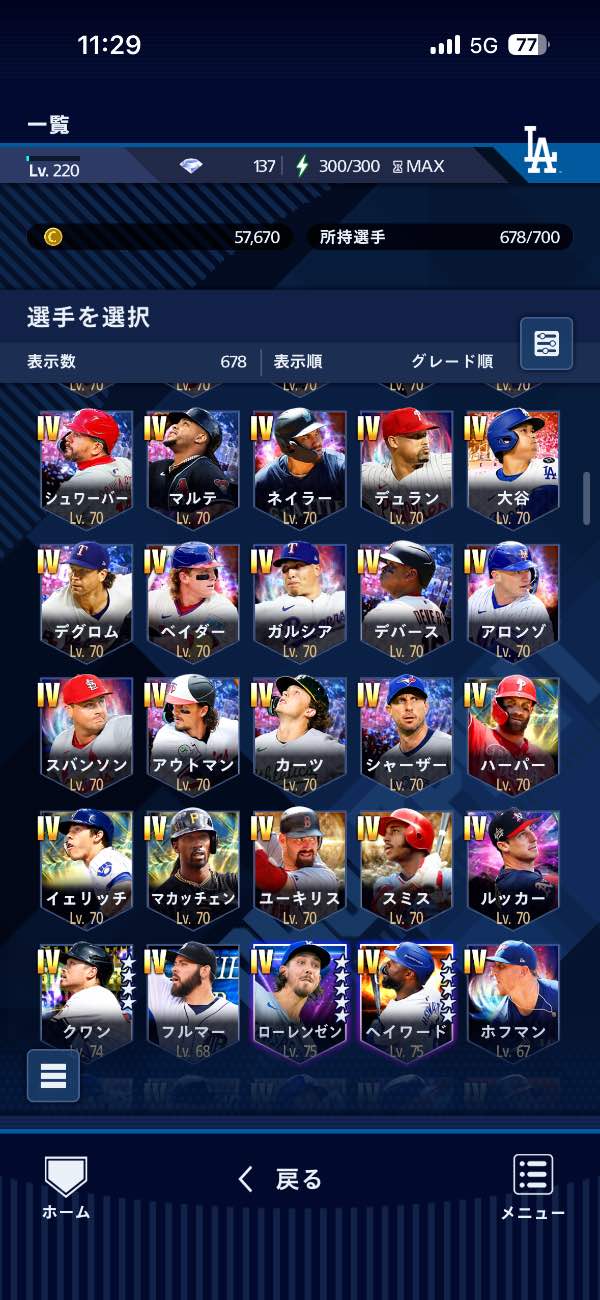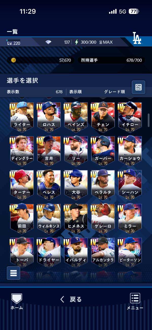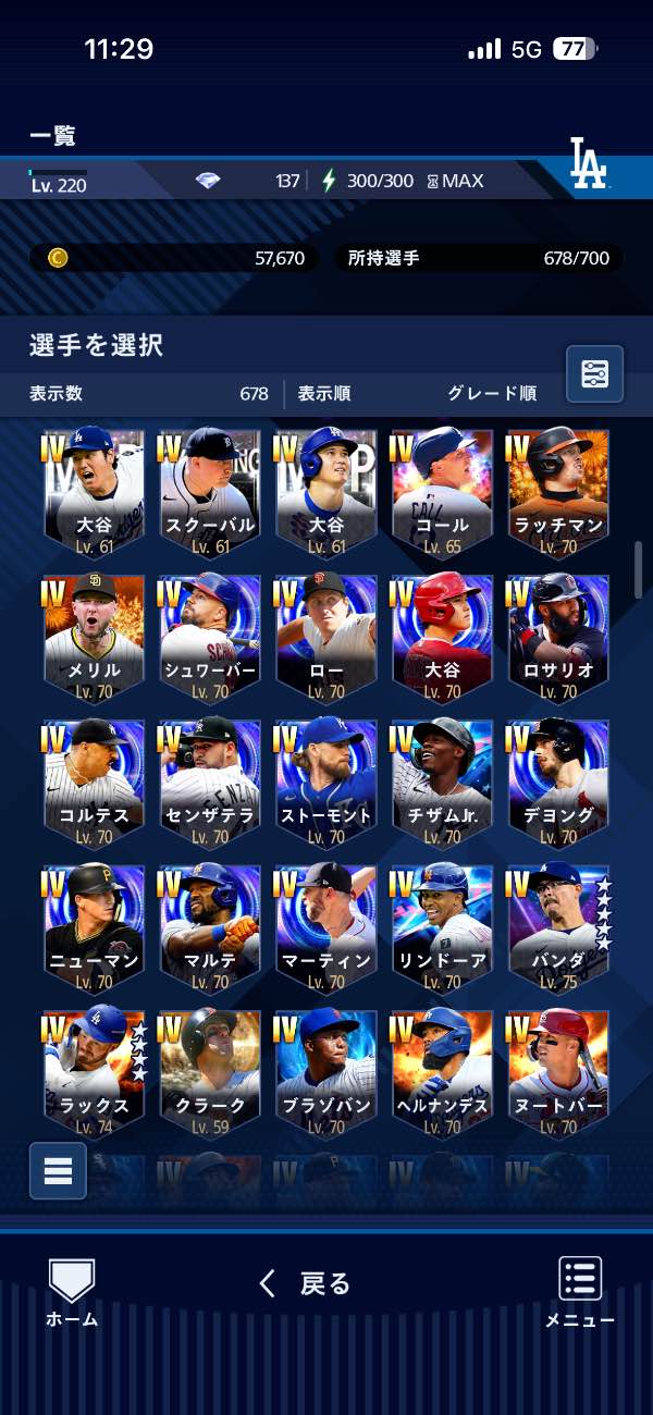 投打大谷所持 グレードIV43体