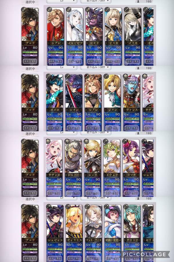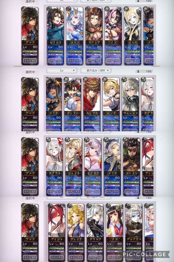 攻略サイトにある評価の高いキャラ、ASミナルカ・ESチルリル・ESヒスメナ・リナリア・メリトなど多数所持しています。