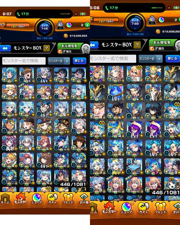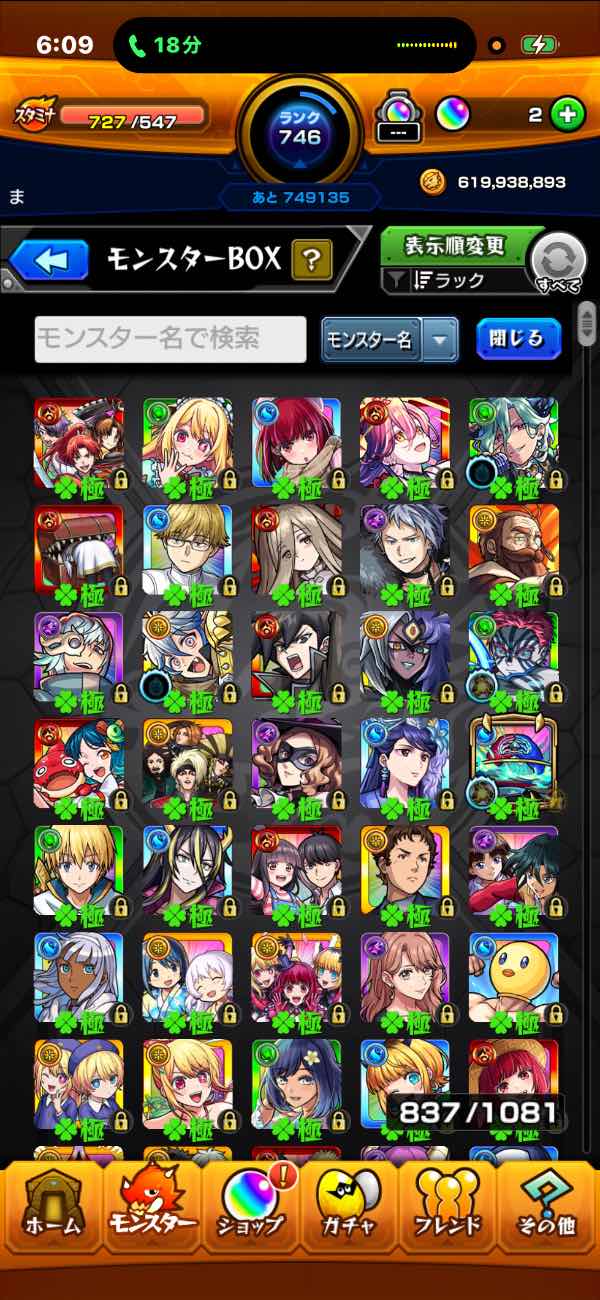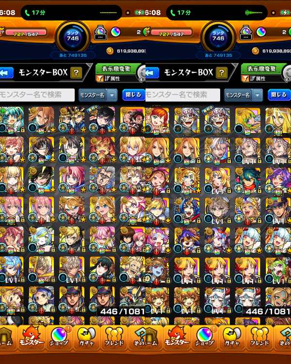 ランク700↑ ガチャ限1700↑