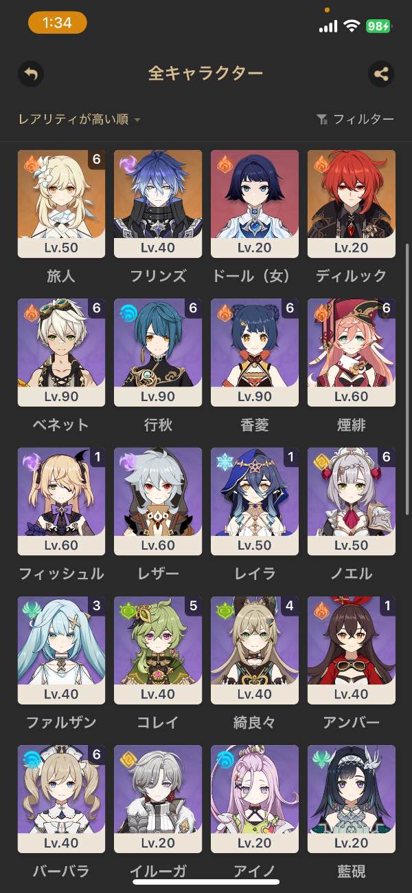 凸とかは写真の見た通りです。聖遺物に関しては頑張っていたので、ある程度揃っています。もうやらなくなったので売ります。新キャラのフリンズ出ましたが育成していませんので育成楽しんでもらえるかと思います。