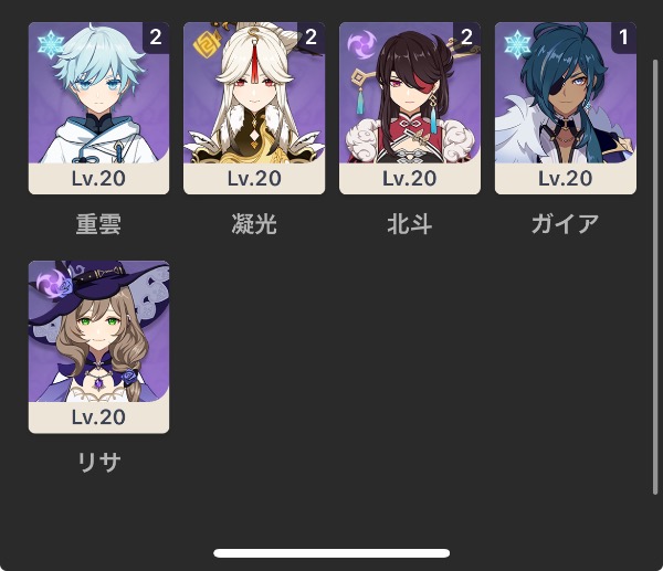 鍾離5凸 ジン2凸 胡桃1凸 ディ...