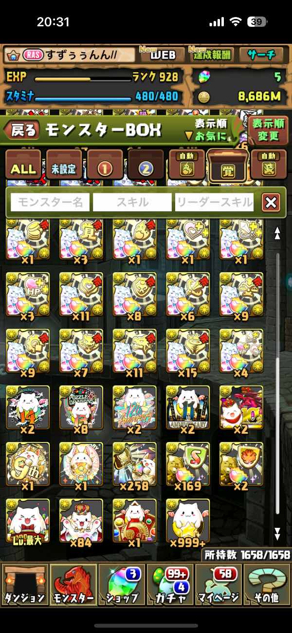 パズドラ引退垢