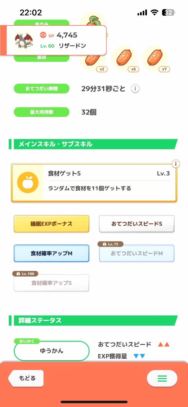 ミート:AAAリザードン(色違い) Lv60 睡ボ スピS食M(75スピM 100食S) ゆうかん