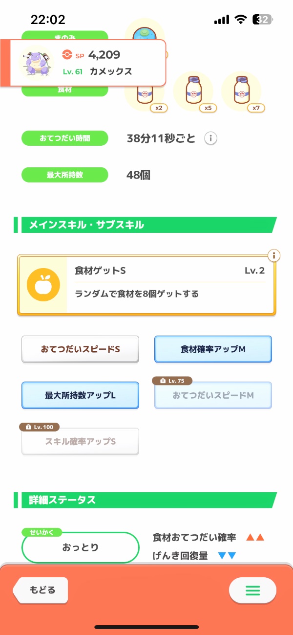 カカオ:ABBカメックス Lv60食MスピMスピS がんばりや