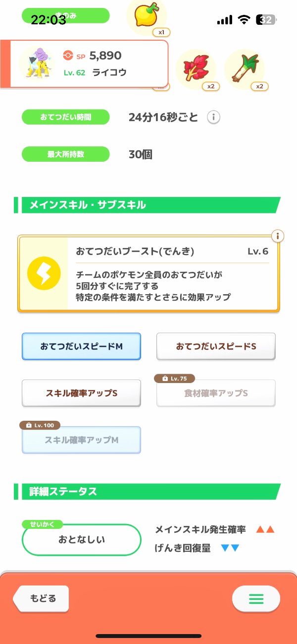 ライコウABC Lv62 スピMスピSスキ確MS(100スキ確M) おとなしい