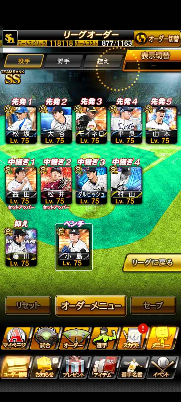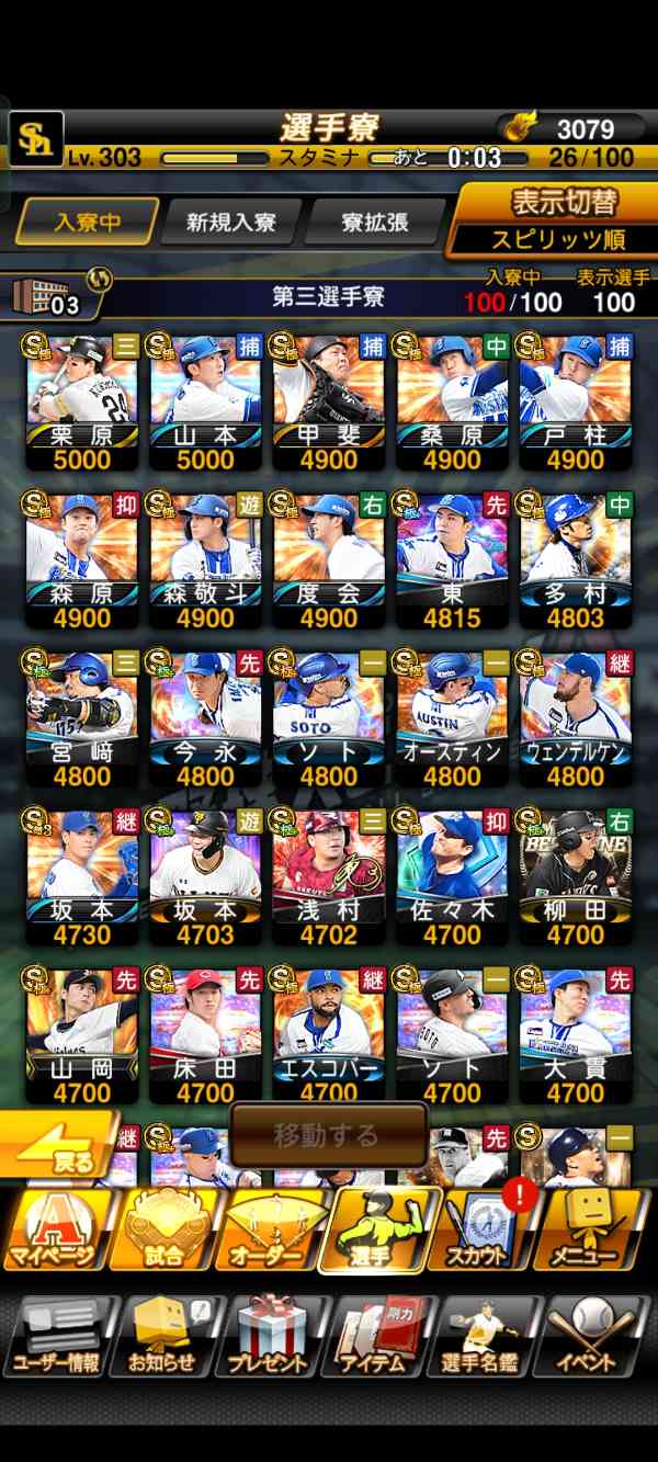 プロスピA(プロ野球スピリッツA) スピリッツ118000以上/エナジー3000以上/S極140枚 リアタイ必須クラス多数所持|マツブシマーケット