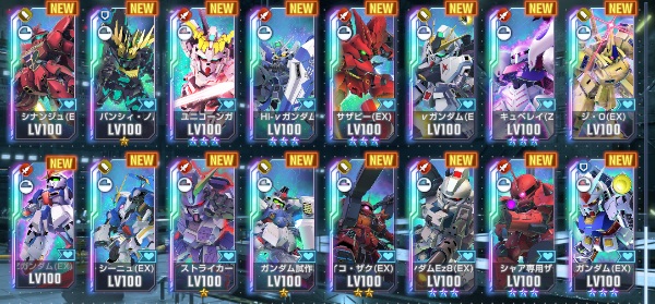 完凸ゴッドガンダム・完凸キャリバーン(最終決戦時)・完凸Hi-νガンダムなど所持