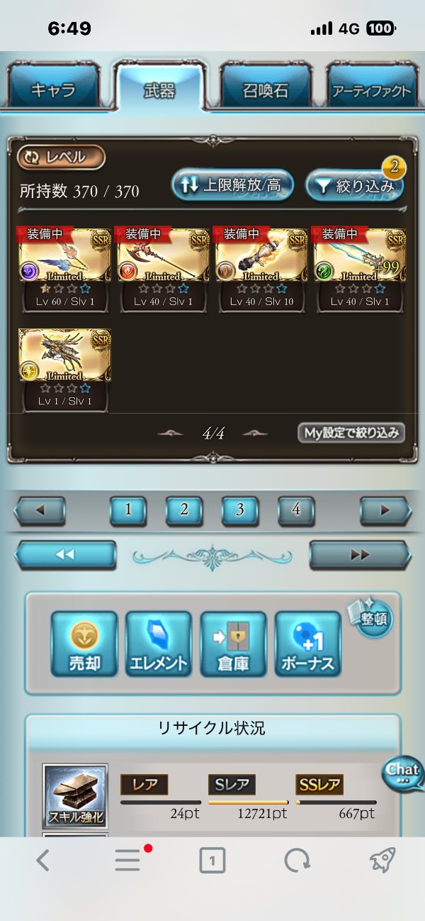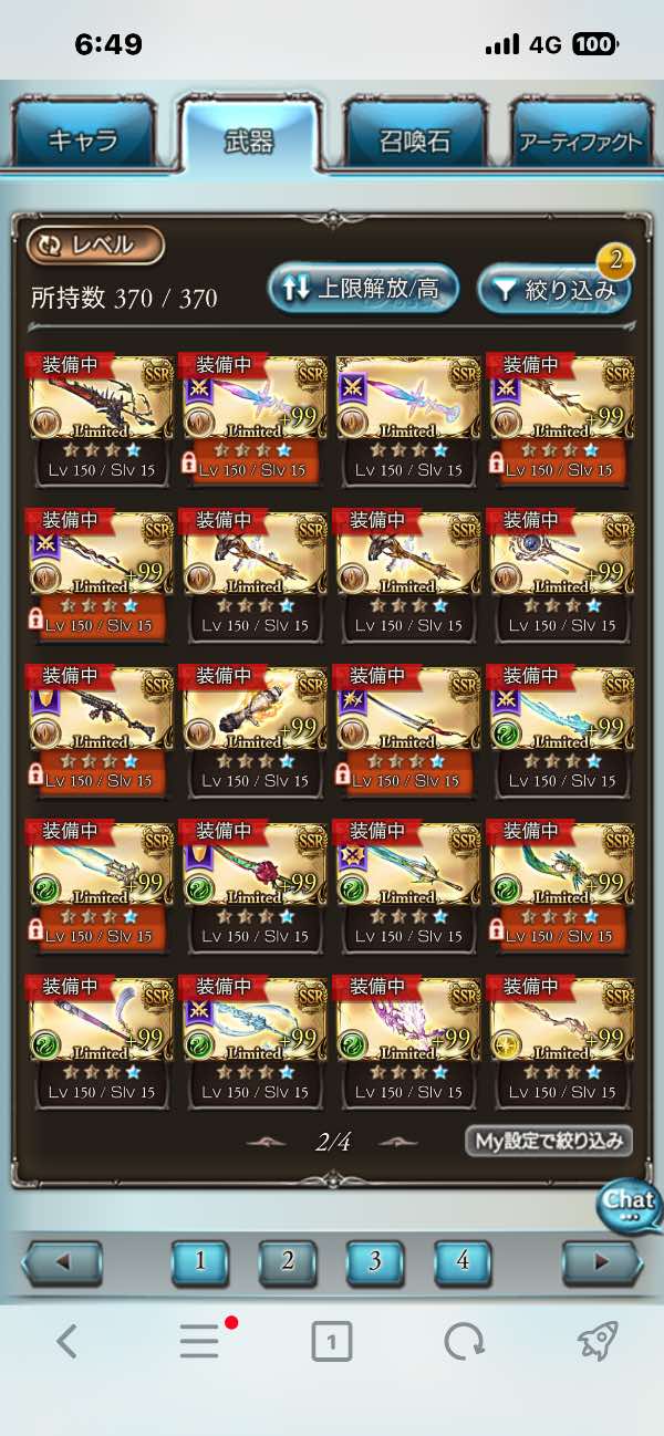 ランク310↑ SSRキャラ490↑ リミ武器ほぼ取得 天使石全完凸 六竜石火以外完凸