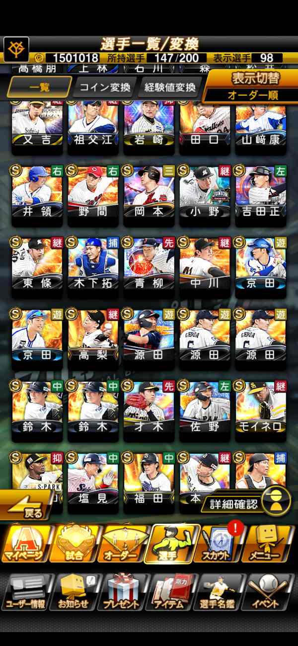 プロスピA(プロ野球スピリッツA) 【初期垢】【S98枚】【4099エナジー】【Vロード未進行】【KONAMI未連携】|マツブシマーケット