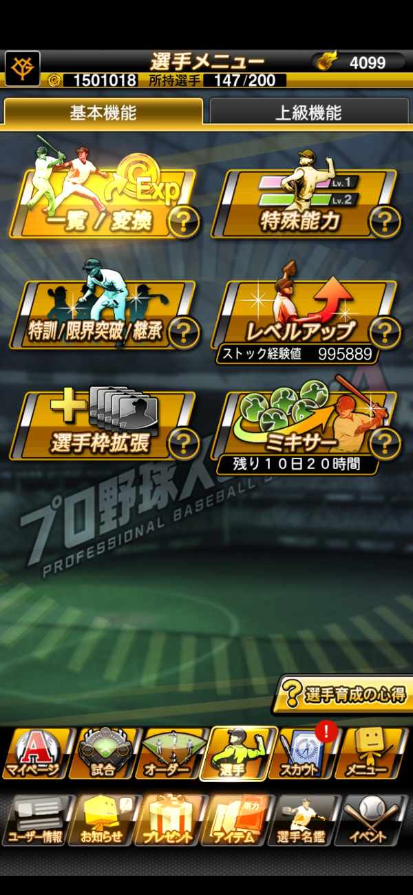 ★特訓コーチ・ストック経験値が大量にあるので即強化が可能