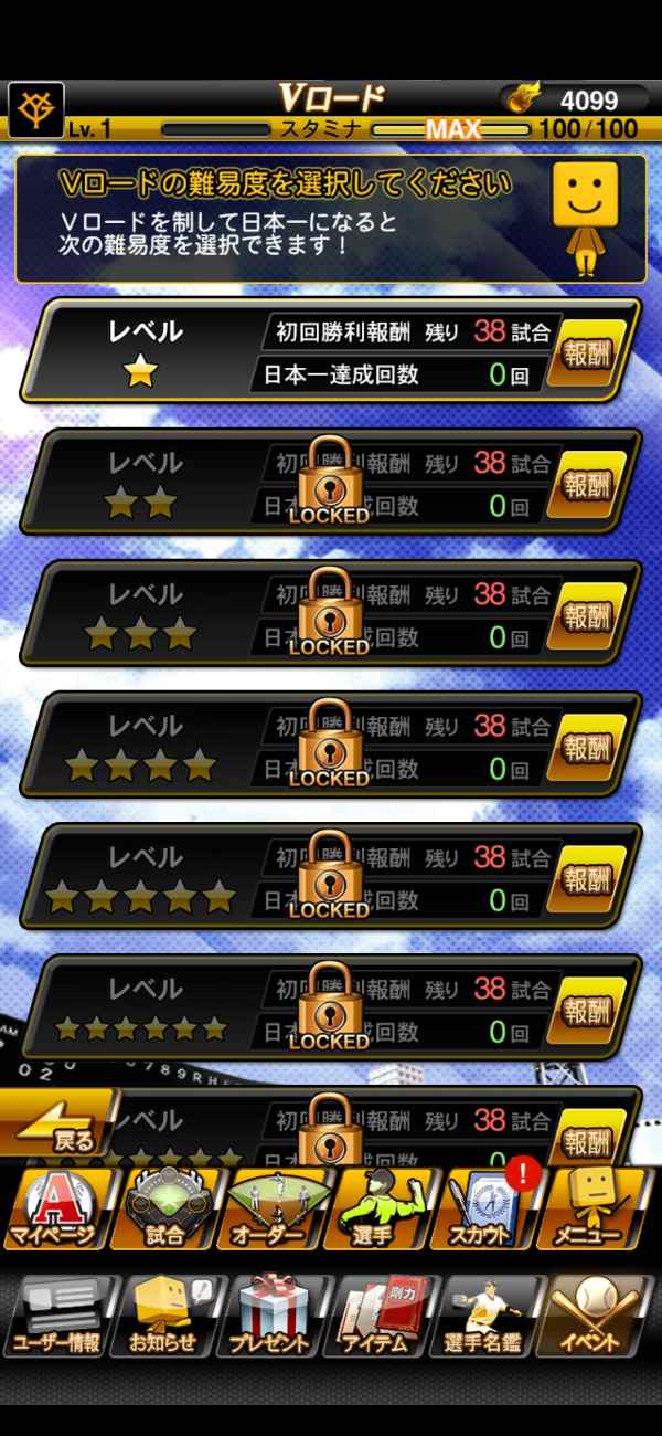 Vロード以外でのイベントは進行する場合がある為、プレイヤーレベル・選手レベルの変動の可能性が有ります