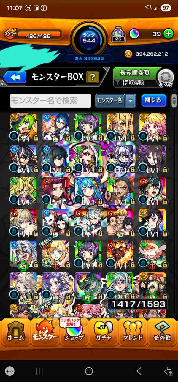 ガチャ限1037運極751ランク604