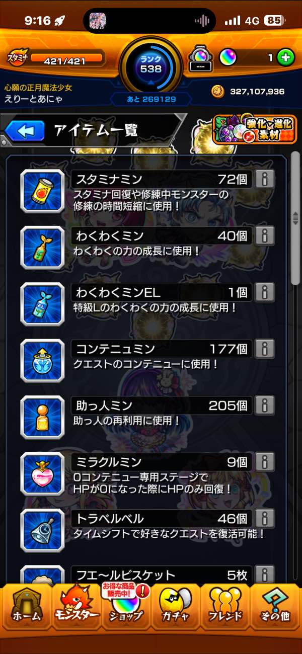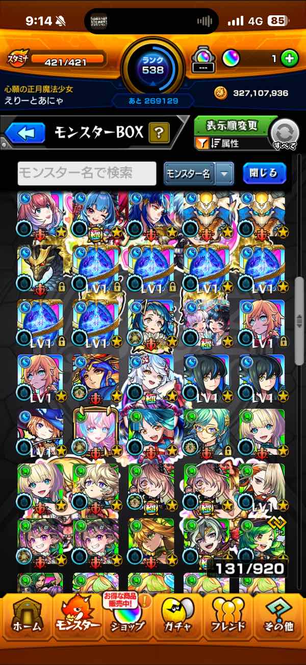 ガチャ限1037運極751ランク604