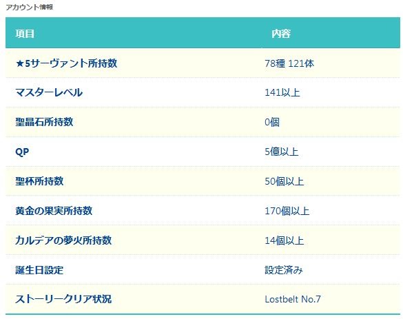引退アカウント ★5宝具鯖5種 U-...