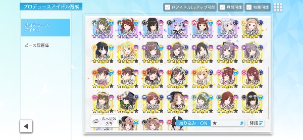★1と★2で★5まで育てたアイドルはかなりの数があるので載せていません