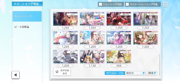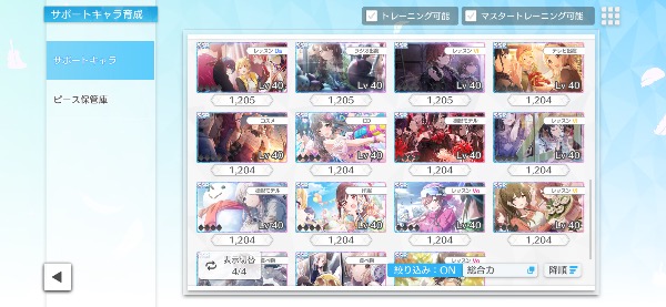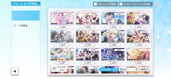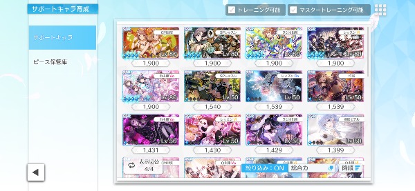 ガチャ産★3アイドルは83体で、サポートカードのSSRは36枚です