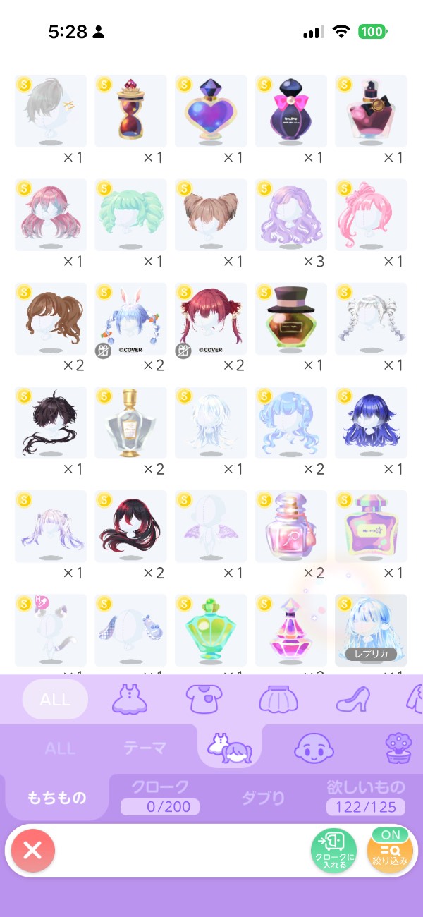 ココリウムにはあまりこだわってこなかったので持ち物少なめ。