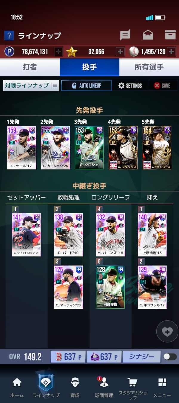 レッドソックス。OVR.149.3。HOF7枚。