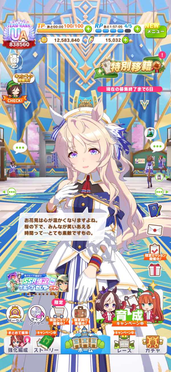 現環境ではトップクラスのサポカ(完凸)が揃ってます。初めてまもないので、やってないシナリオや、ミッションがありますので、まだまだ石回収出来ます。