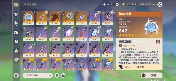 原神 夜蘭完凸垢 遺物厳選済み