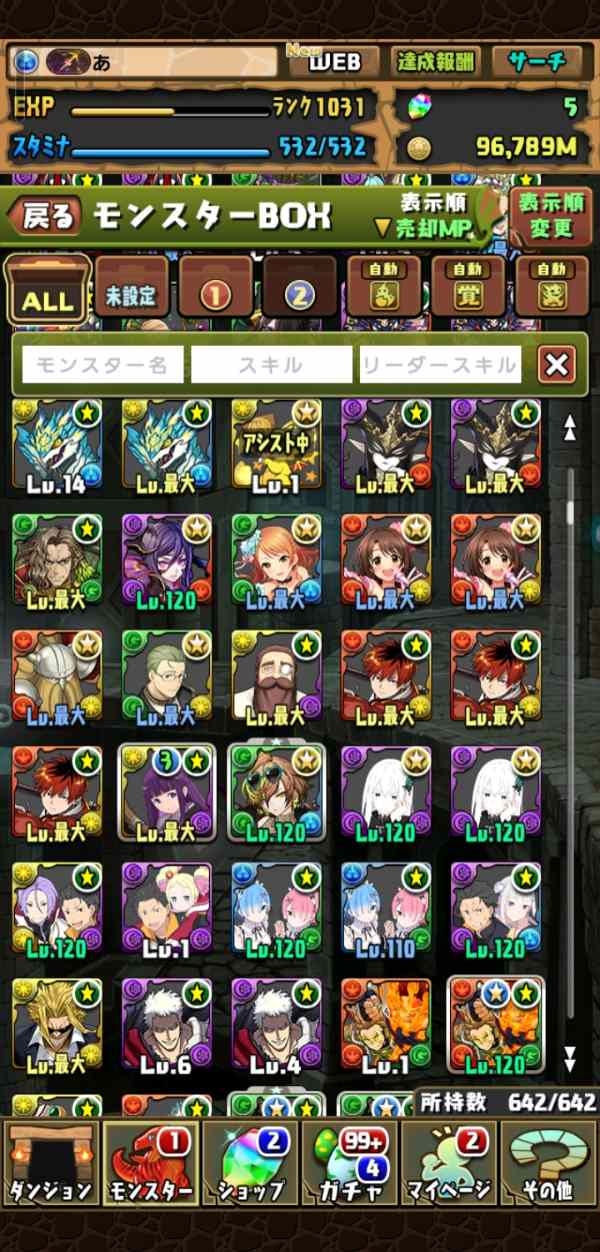 魔法石2500個+ガチャキャラ200-...