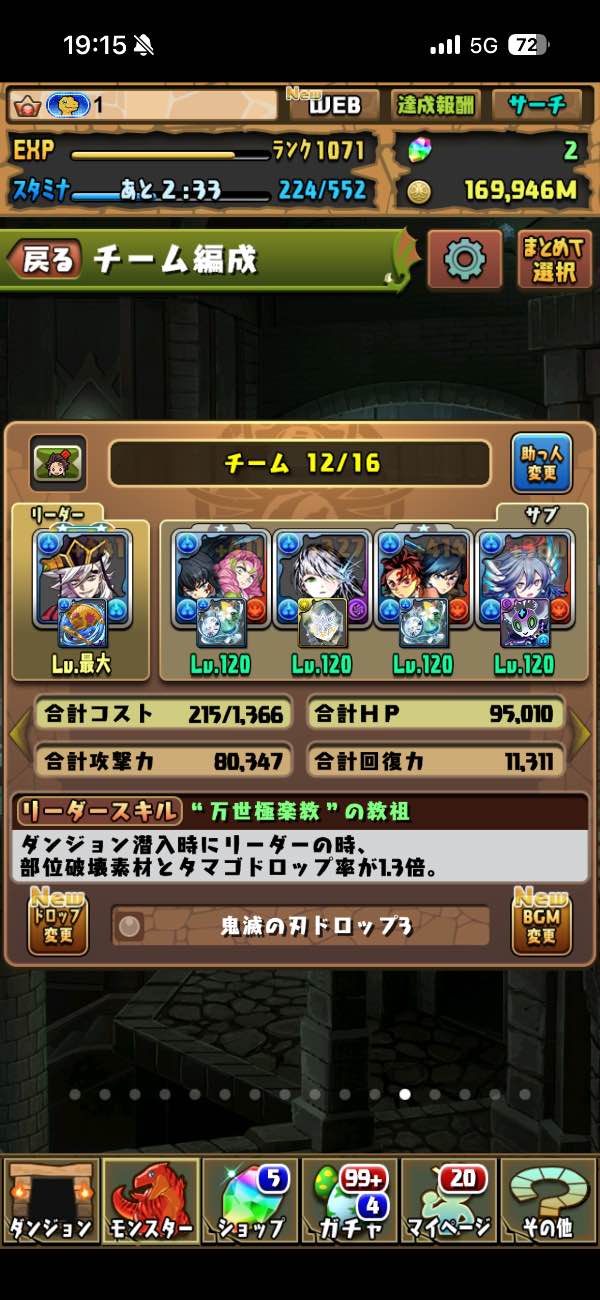 パズドラ引退垢 1100ランク↑