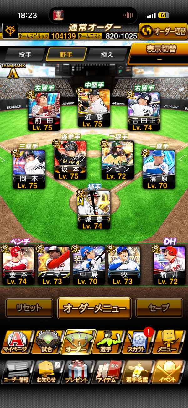 極6体‼️守備B広角岡本‼️侍大谷...