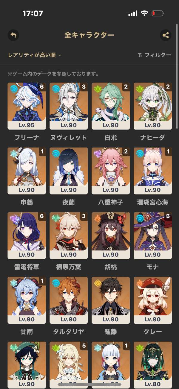 Lv95以上、星5完凸、凸キャラ、...