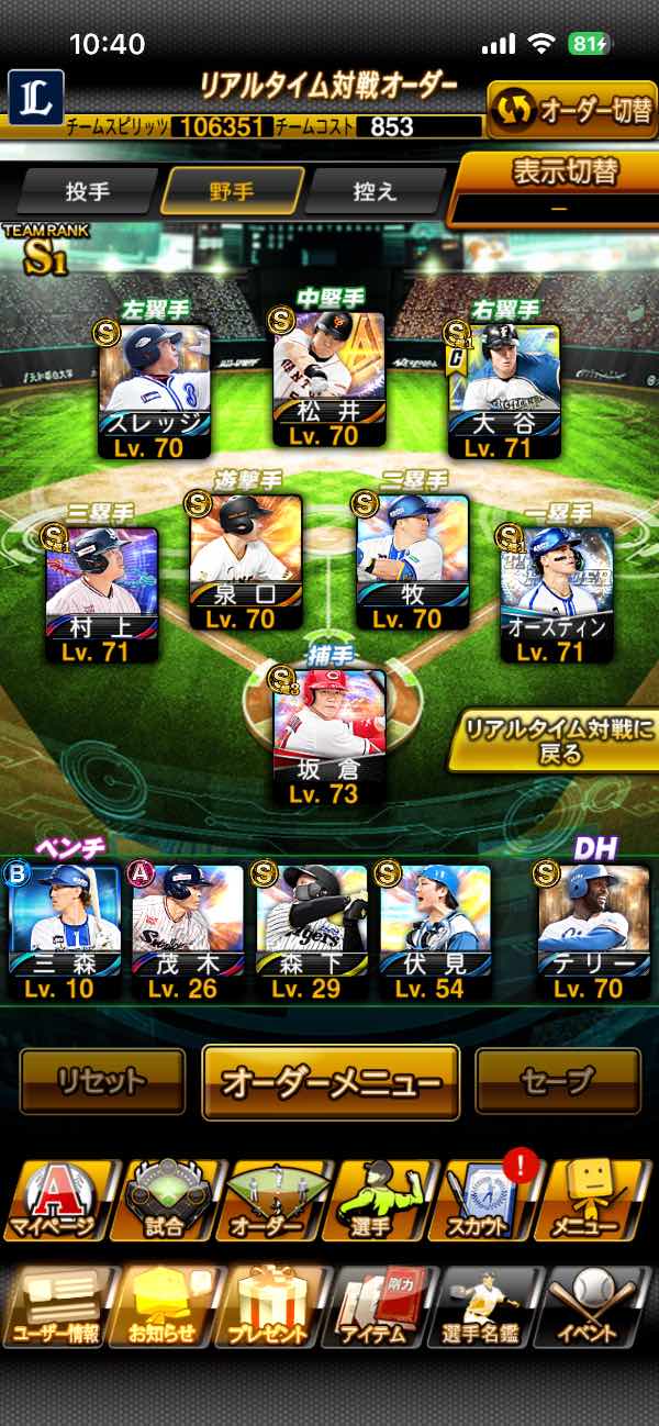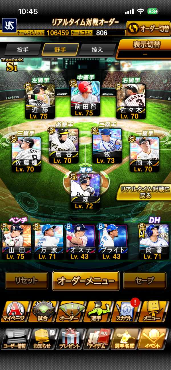 極6体‼️守備B広角岡本‼️侍大谷...