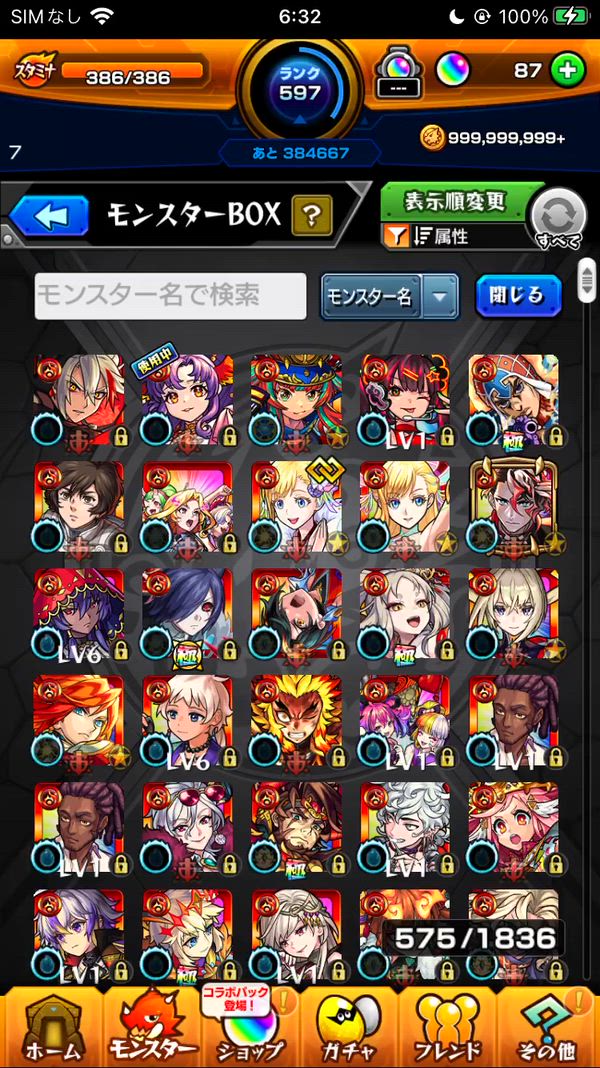 星6ガチャ限600体 運極1000↑9桁ID