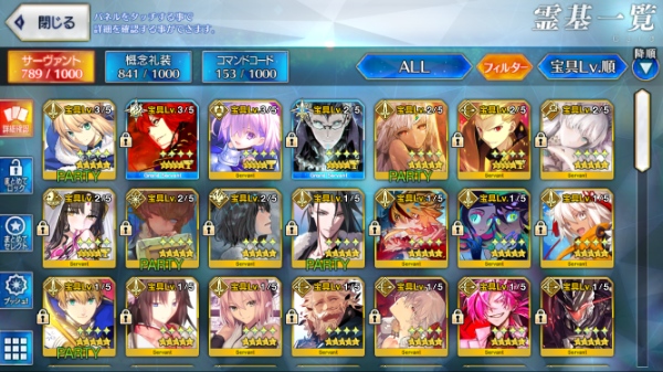 FGO-☆5×29種55体 142LVアカウント