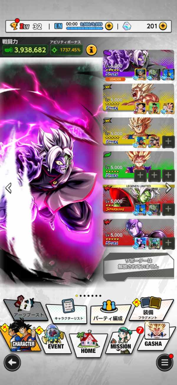 ドラゴンボールレジェンズのリセマラアカウントは目当てのキャラクターを所持した状態から遊ぶことができます。
