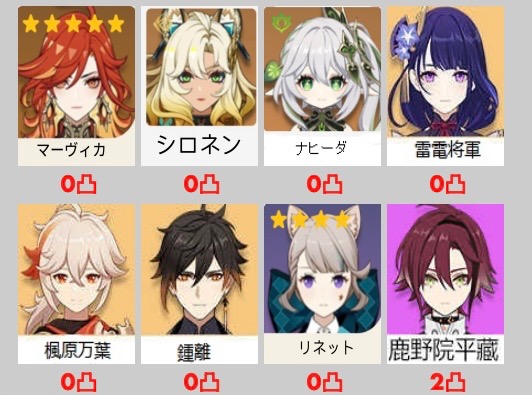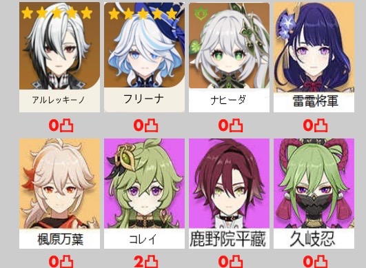 凸の進んでるキャラ多数 原神