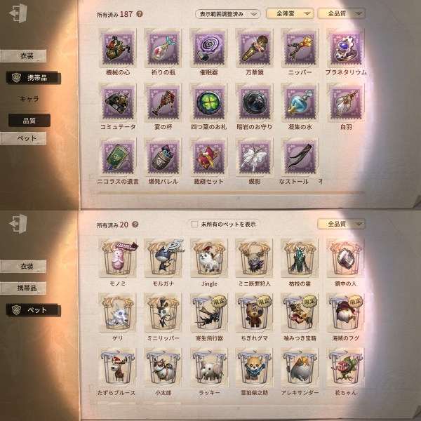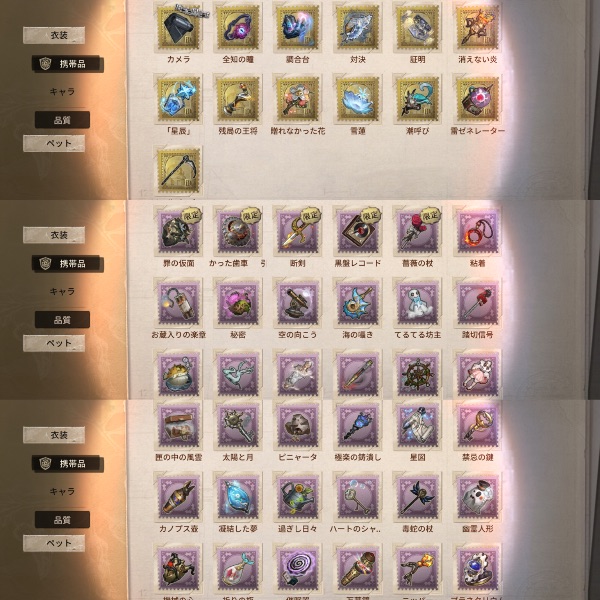 夜魔・邪眼・パシリッサ・三面神・白金アラジン・眠ったウサギ・時の砂
