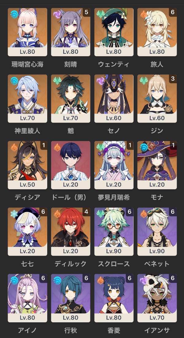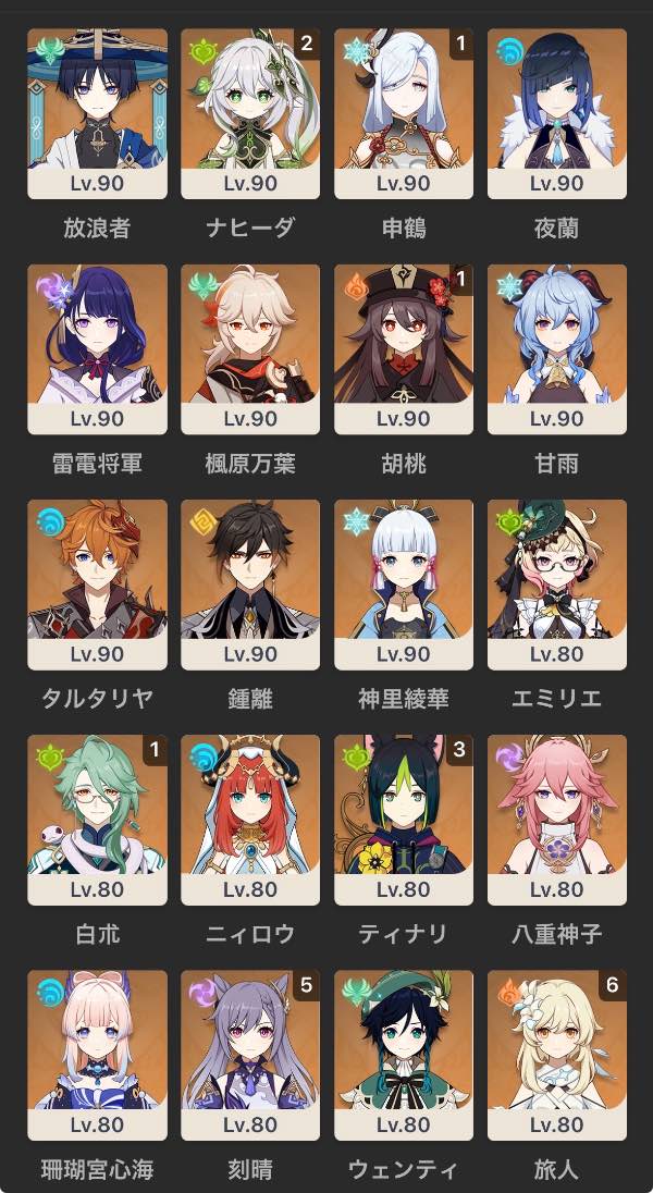 ヌヴィレット完凸、放浪者完凸...
