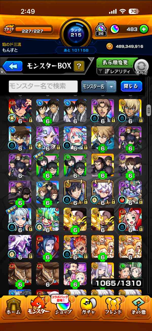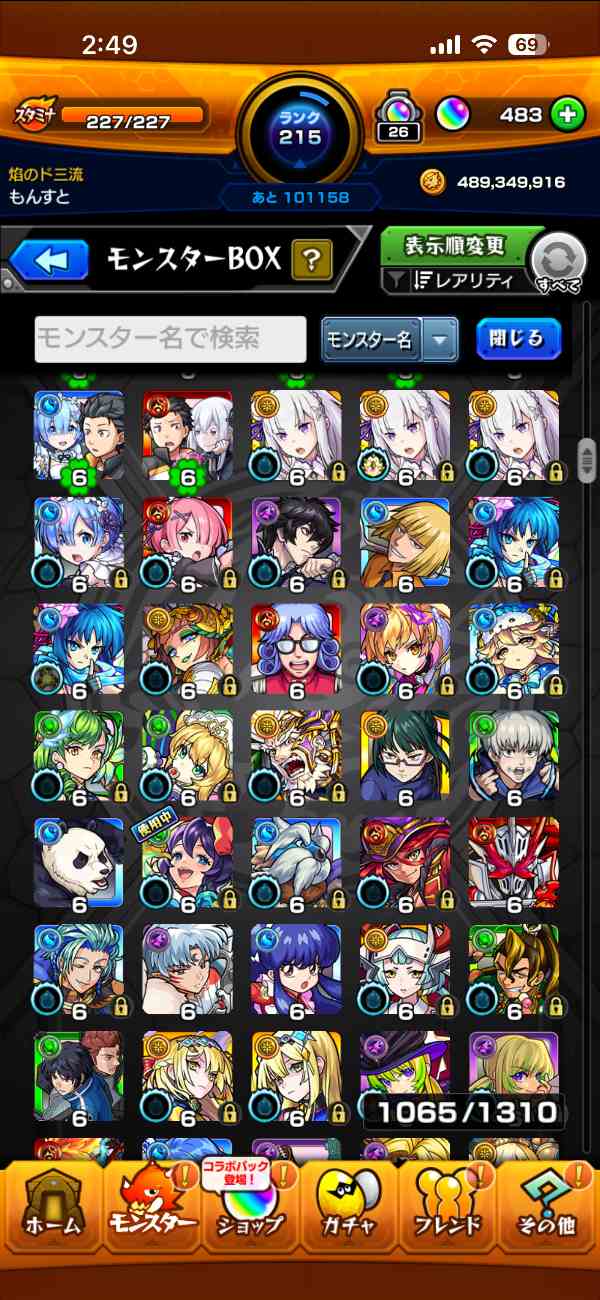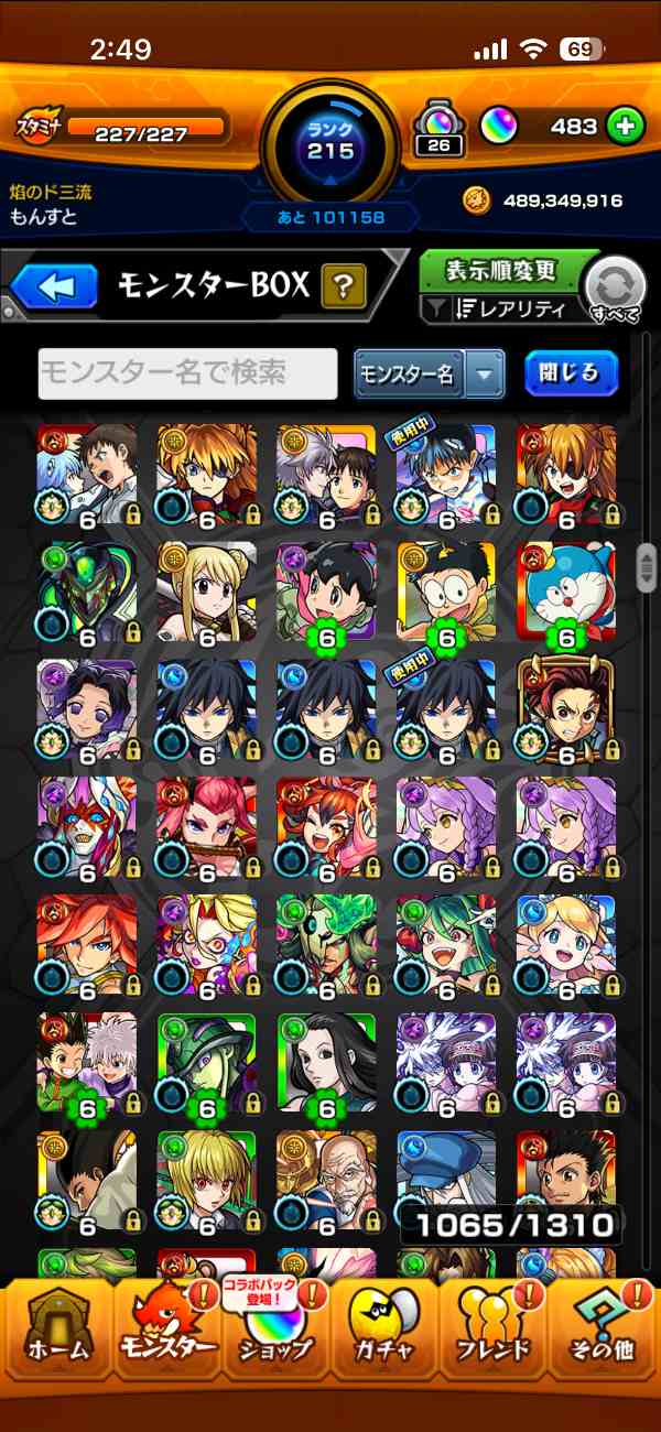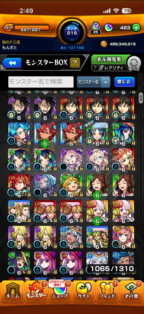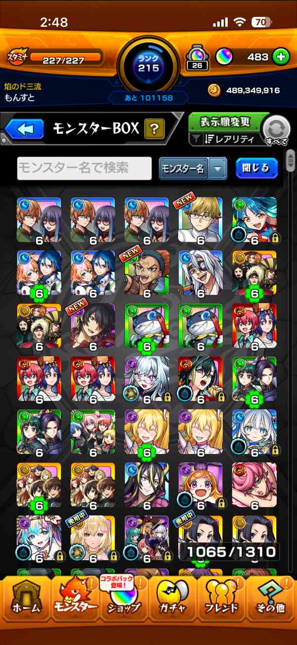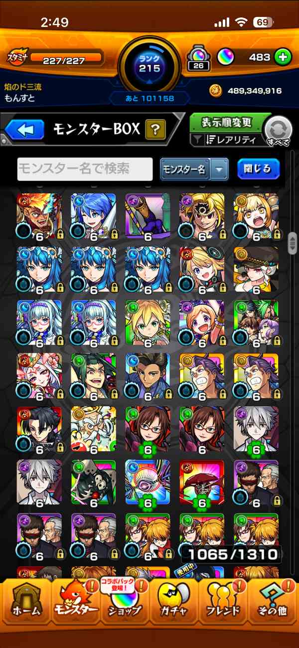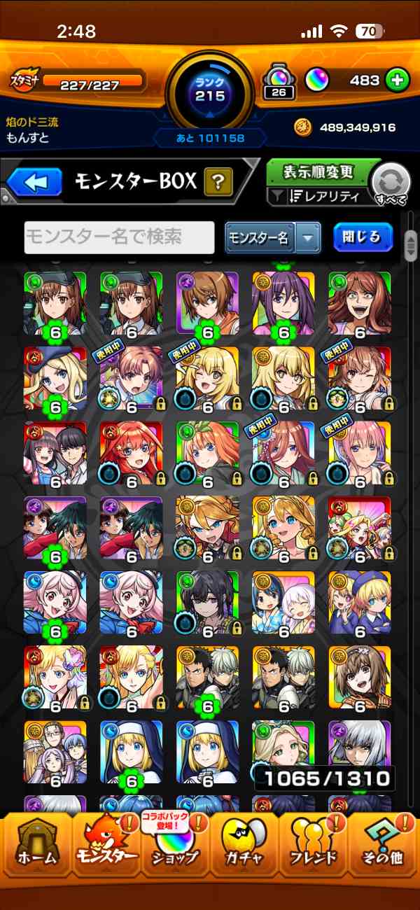 友人とのマルチをメインにやっていて、ランク上げは意識していなかったため、モンスト歴に対してランクが低めです。ランクの割にはガチャ限のキャラが比較的多いと思います。課金歴はいくらかあります。コラボガチャをよく引いてました。