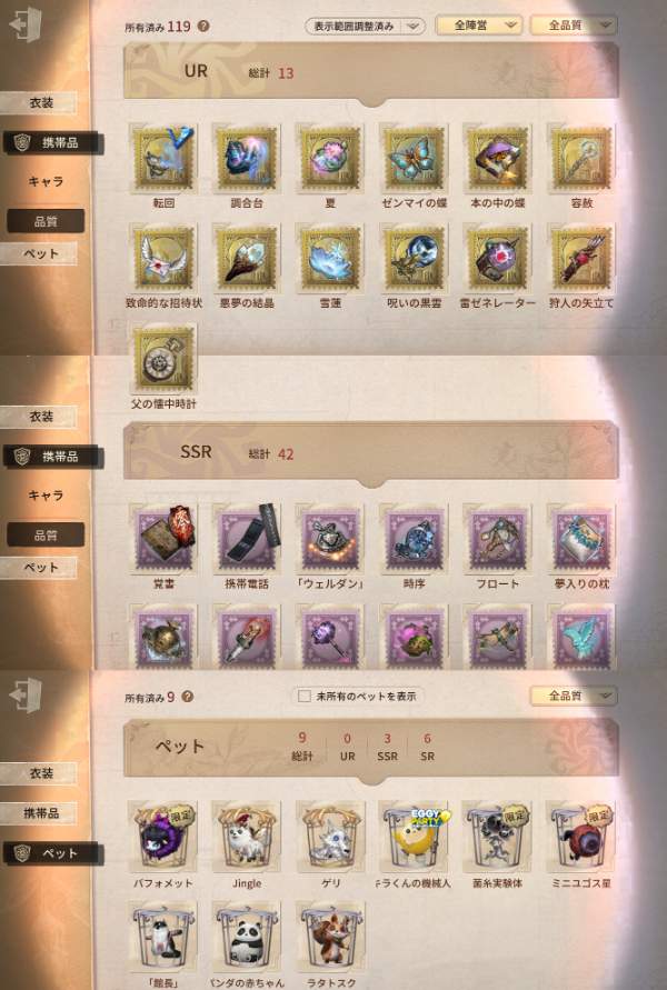 iOS版 エウリディーチェ・ソウルモクテル・モーガンルフェなど所持