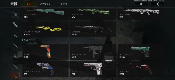 その他グレネードや武器パーツや服などの金スキンがあります。